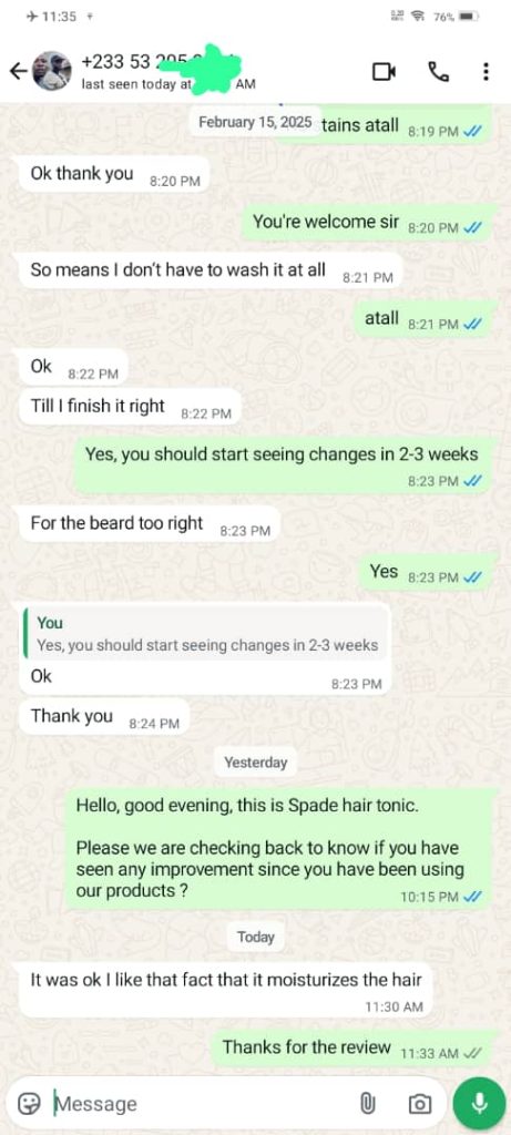 This is why we created Spade Hair Tonic — a dermatologist-approved, natural solution developed to meet the unique hair and scalp needs in Africa. It works to stop hair loss, restore lost hair, strengthen hair roots, and protect the scalp from further damage.